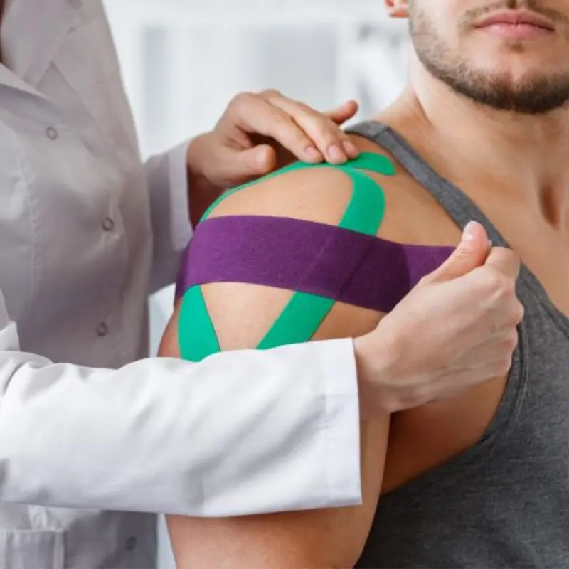 trabalhamos com a fisioterapia traumato-ortopédica, Neurofuncional e Cardiorrespiratória, liberação miofascial e aplicação de kinésio Tape.