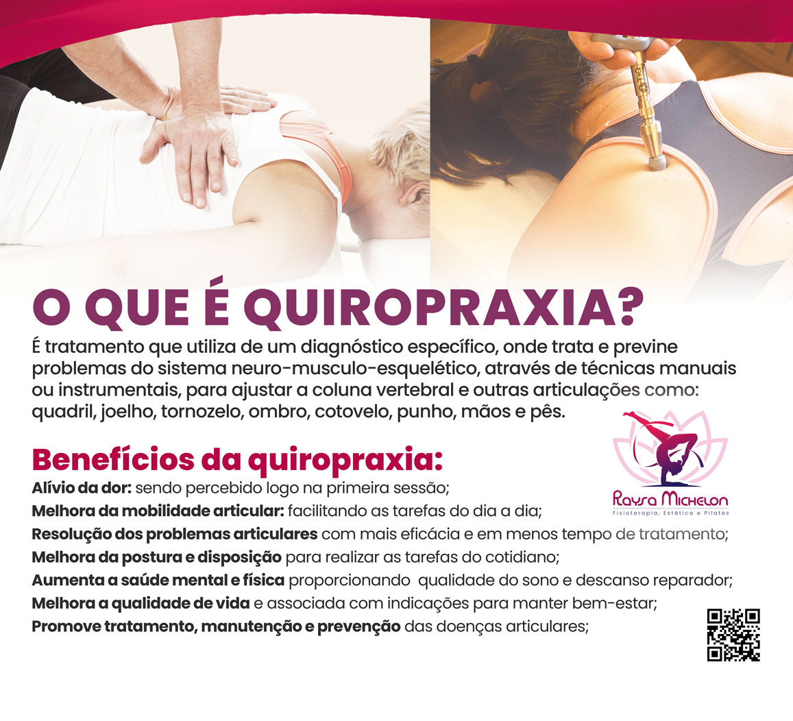 Raysa Maiara Michelon, formada em 2014 pela Uniguairacá em Guarapuava-Pr, em fisioterapia, em 2021 formada no curso completo de Pilates contemporâneo pela Voll Pilates e em 2022 formada Técnica em Estética pelo Colégio Estadual Anavanda Bássara e cursando pós graduação em Quiropraxia na Faculdade Inspirar de Guarapuava.